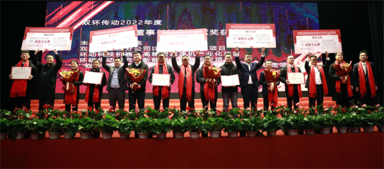 會(huì)議現(xiàn)場隆重表彰了在2022年度為集團(tuán)發(fā)展做出突出貢獻(xiàn)的項(xiàng)目團(tuán)隊(duì),授予他們“董事長特別貢獻(xiàn)獎(jiǎng)”,這是集團(tuán)榮譽(yù)最高、獎(jiǎng)金最大的獎(jiǎng)項(xiàng)。作為雙環(huán)傳動(dòng)的最高標(biāo)桿,他們激勵(lì)著每一個(gè)雙環(huán)人、每一個(gè)團(tuán)隊(duì),未來能在自己的崗位上突飛猛進(jìn)、大展宏圖、創(chuàng)新發(fā)展,雙環(huán)不會(huì)辜負(fù)每一個(gè)努力付出的人。