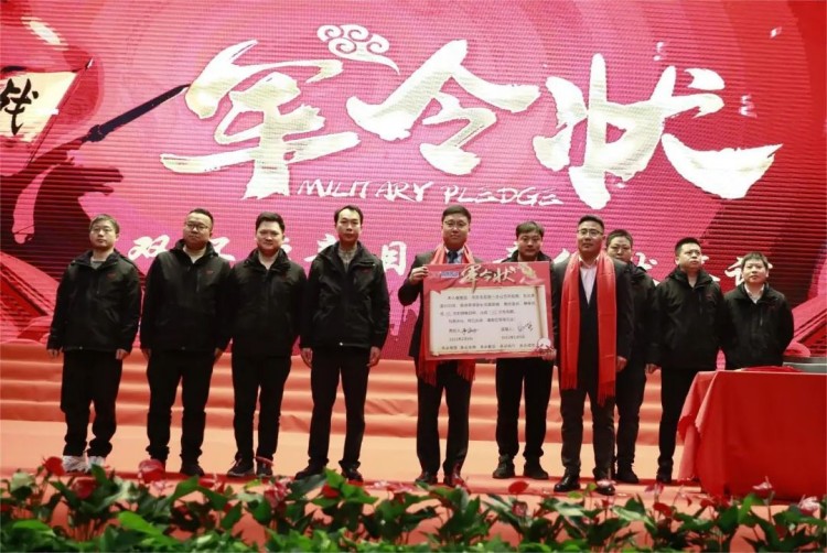 軍令狀簽訂完畢,現(xiàn)場全體人員站立,共同握拳鄭重宣誓,為沖刺2023年目標(biāo),勠力同心、奮斗不止。