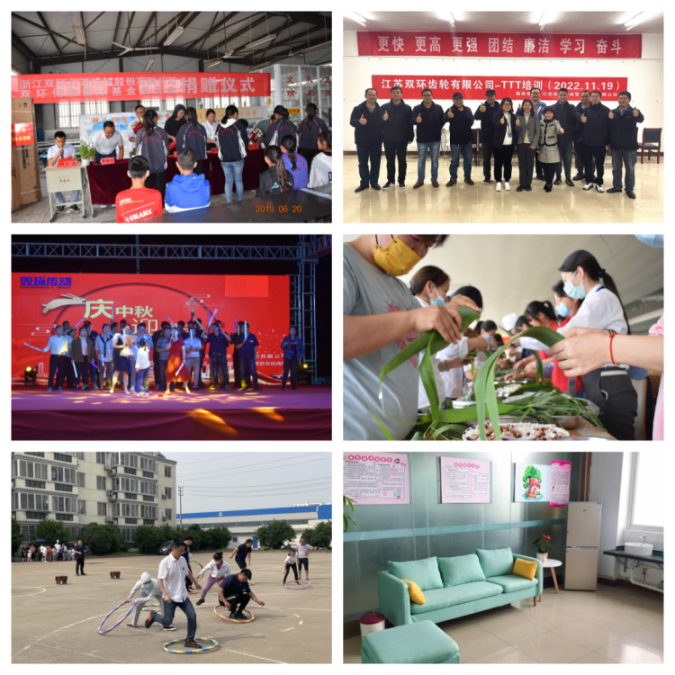 自創立以來,江蘇雙環秉承母公司雙環傳動“好一點,好很多”的優秀文化基因,始終關注職工發展,努力為職工提供物質和精神雙幸福,積極踐行“目標文化” “責任文化” “改善文化” “奮斗文化” “家文化”五大企業文化,將“為職工搭建發展平臺”作為江蘇雙環的奮斗使命,致力于為每位職工提供多元化的職業發展路徑,著力塑造健康和諧的工作氛圍,不斷豐富廣大職工的精神文化生活,努力健全職工健康服務體系。