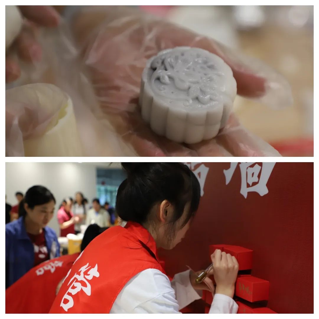 聽完講解后,大家抑制不住自己的小手開始制作起來。每一個小桌形成了一個小團隊,大家分工協(xié)作,有人負(fù)責(zé)揉面,有人負(fù)責(zé)包餡料,有人負(fù)責(zé)壓模。通過一道道工序,一個個色彩繽紛、晶瑩剔透的冰皮月餅便呈現(xiàn)在眼前。“你看我這個粉嫩粉嫩的”“我這個花紋超好看”,大家相互分享,將做好的月餅小心翼翼放入精致的月餅盒中,腦海中浮現(xiàn)出與家人、同事、朋友分享美食的歡樂場景。DIY活動在歡聲笑語中落下帷幕。