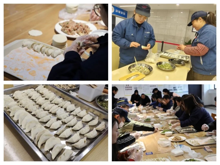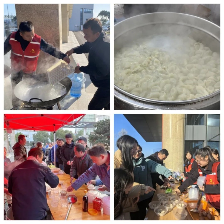“冬至不端餃子碗,凍掉耳朵沒人管。”在雙環本部和江蘇雙環,又是一番別樣的熱鬧景象。“開煮!”一聲令下,一個個白白胖胖的餃子紛紛入鍋,不一會兒就香飄四溢,伴隨著熱氣騰騰的餃子出鍋,整個園區沉浸在餃香四溢的節日氛圍中。大家圍坐在一起,吃餃子、嘮家常,現場氛圍十分和諧。為了照顧異鄉人的口味,雙環本部還為大家貼心地準備了美味的咸甜湯圓、茶葉蛋、五花肉燉粉。
