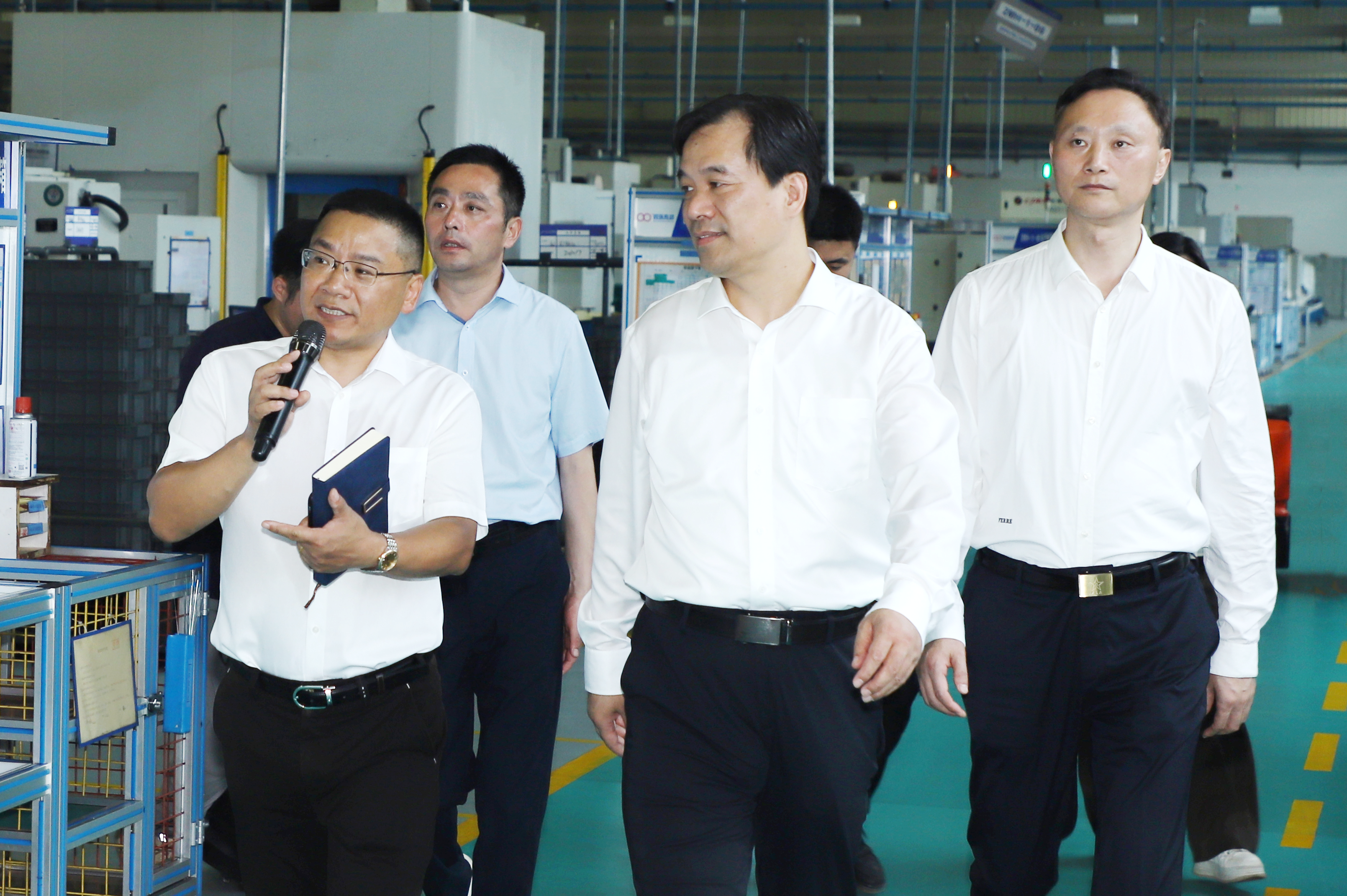 7月17日,江蘇省工信廳廳長朱愛勛、辦公室主任李劍澄、人事處處長張北虹、辦公室一級主任科員胡錦恒,淮安市長顧坤、副市長張沖林、市政府秘書長顧強、市政府副秘書長朱鵬程、市工信局局長楊維東,淮安區委書記顏復、副區長郭秋香等領導一行蒞臨江蘇雙環調研指導。江蘇雙環總經理聞靈浩、綜合管理部部長紀文杰、二工廠廠長蔣志方等予以熱情接待。