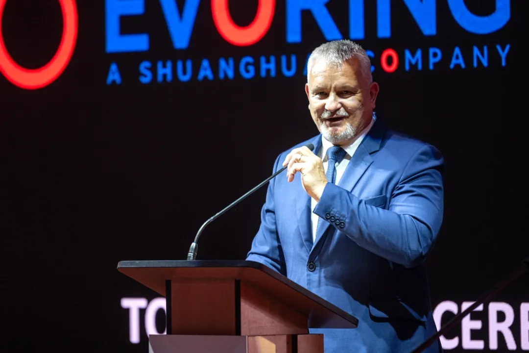 在致辭中,吳長鴻代表雙環(huán)傳動向匈牙利政府領(lǐng)導(dǎo)、各位嘉賓的到來表示熱烈歡迎與誠摯感謝。他表示,轉(zhuǎn)眼間,我們就能見證工廠建設(shè)的完成,雙環(huán)匈牙利工廠建設(shè)如此高效地推進(jìn),離不開大家的大力支持與共同努力。在此,非常感謝匈牙利中央政府、當(dāng)?shù)刂?、市為工廠的建設(shè)所給予的大力支持,感謝項目建設(shè)方Merkbau團(tuán)隊,項目管理方Greenfield團(tuán)隊,當(dāng)?shù)睾献骰锇橐约半p環(huán)EVORING團(tuán)隊等給予的關(guān)心支持與付出的辛勤努力。期待項目團(tuán)隊再接再厲,同心協(xié)力,推動工廠早日建成投產(chǎn),為更好地服務(wù)全球客戶、穩(wěn)步實現(xiàn)公司國際化發(fā)展、推動屬地社會與經(jīng)濟(jì)發(fā)展做出貢獻(xiàn)。