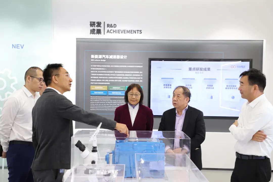 在雙環研究院展廳,吳長鴻向林忠欽院士詳細介紹了公司的發展歷程、業務布局、技術創新成果、智能制造以及未來戰略規劃等。他表示,雙環傳動以“改變齒輪行業自給自足的格局,成為全球精密傳動領導者”為企業愿景,一直堅持以技術為立身之本,在技術研發、產品創新、數字化轉型上取得了積極成果,致力于為全球機械傳動系統提供高速低噪、安全低碳的產品。林忠欽院士仔細察看著每一樣展品,對雙環傳動在技術研發方面的投入和取得的成果表示肯定。在雙環研究院實驗室,林忠欽院士饒有興趣地觀看了各種先進的實驗設備和測試過程,對雙環傳動在質量控制和技術創新方面的嚴謹態度表示贊賞。