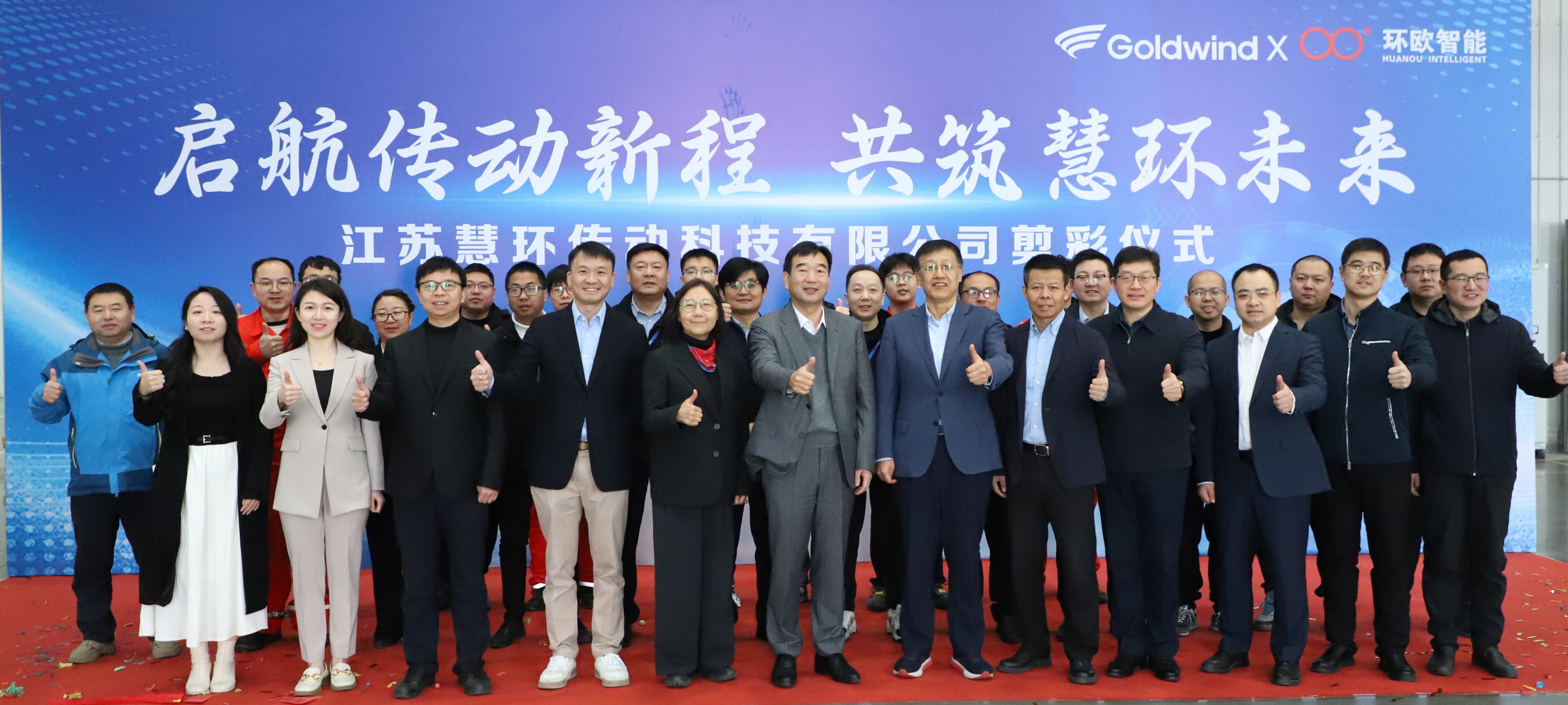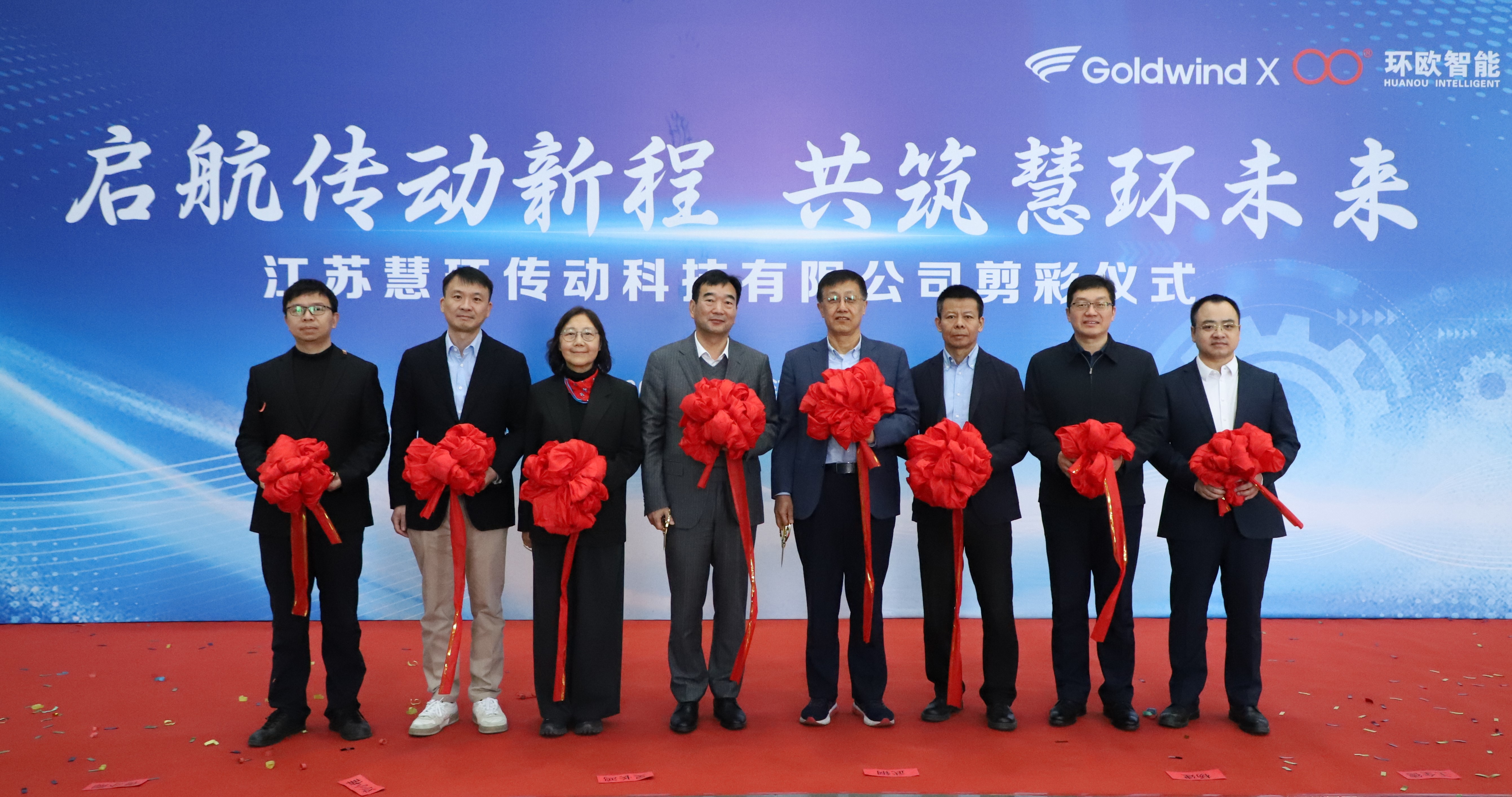 金風科技董事長武鋼,金風慧能董事長兼總經(jīng)理楊建,江蘇金風科技有限公司總經(jīng)理王全德,金風慧能副總經(jīng)理兼慧環(huán)傳動董事長馬輝,慧環(huán)傳動總經(jīng)理錢毅澤,雙環(huán)傳動董事長吳長鴻、顧問劉小稚,雙環(huán)傳動副總經(jīng)理、環(huán)歐智能董事長、慧環(huán)傳動董事蔣亦卿,環(huán)歐智能總經(jīng)理馮闖等出席開業(yè)剪彩儀式。